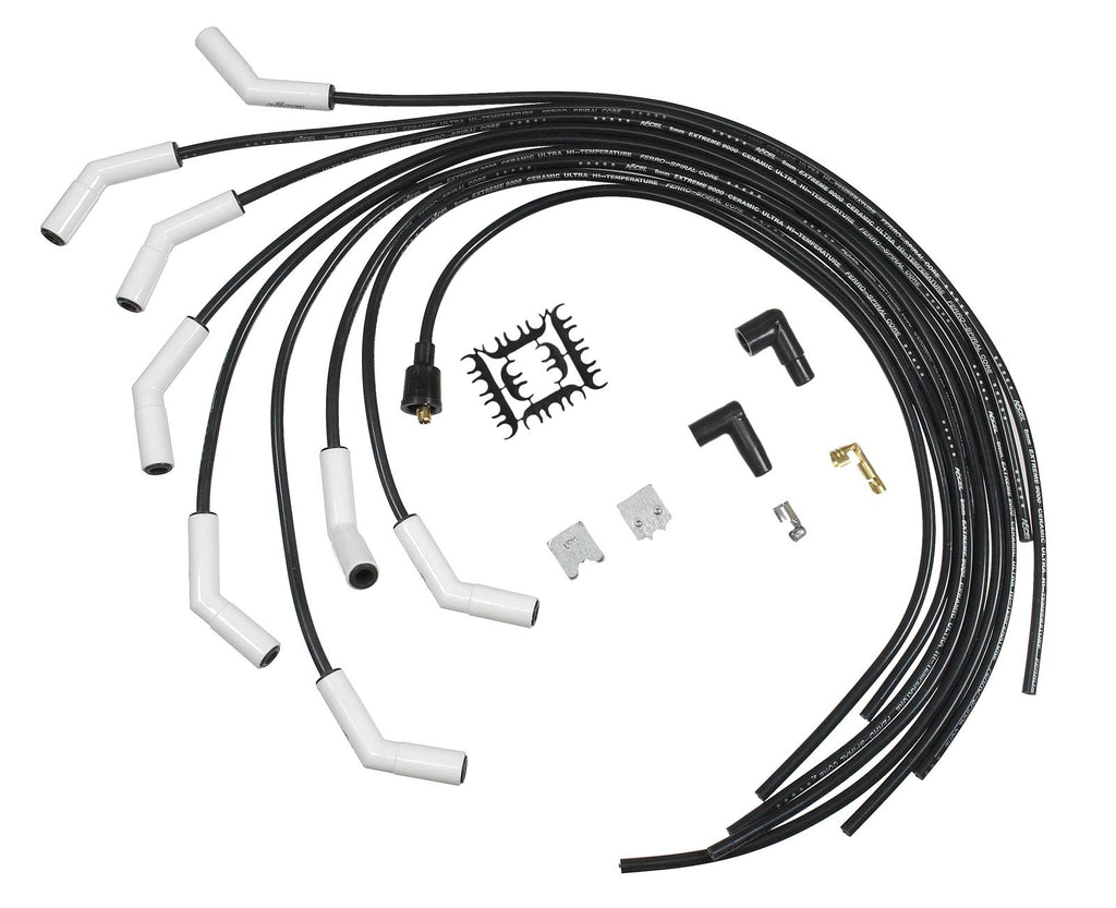 ACCEL Extreme 9000 ceramic wires are the cure for burnt spark plug boots. These wires provide excellent energy delivery while providing the highest level of RFI/EMI suppression. They're ideal for custom engines, boats, and RVs—plus great trackside accessories when you need to make up a replacement wire. ACCEL Extreme 9000 ceramic spark plug wire sets are available straight or in right-angle configurations. Order the set recommended for your vehicle and engine application.