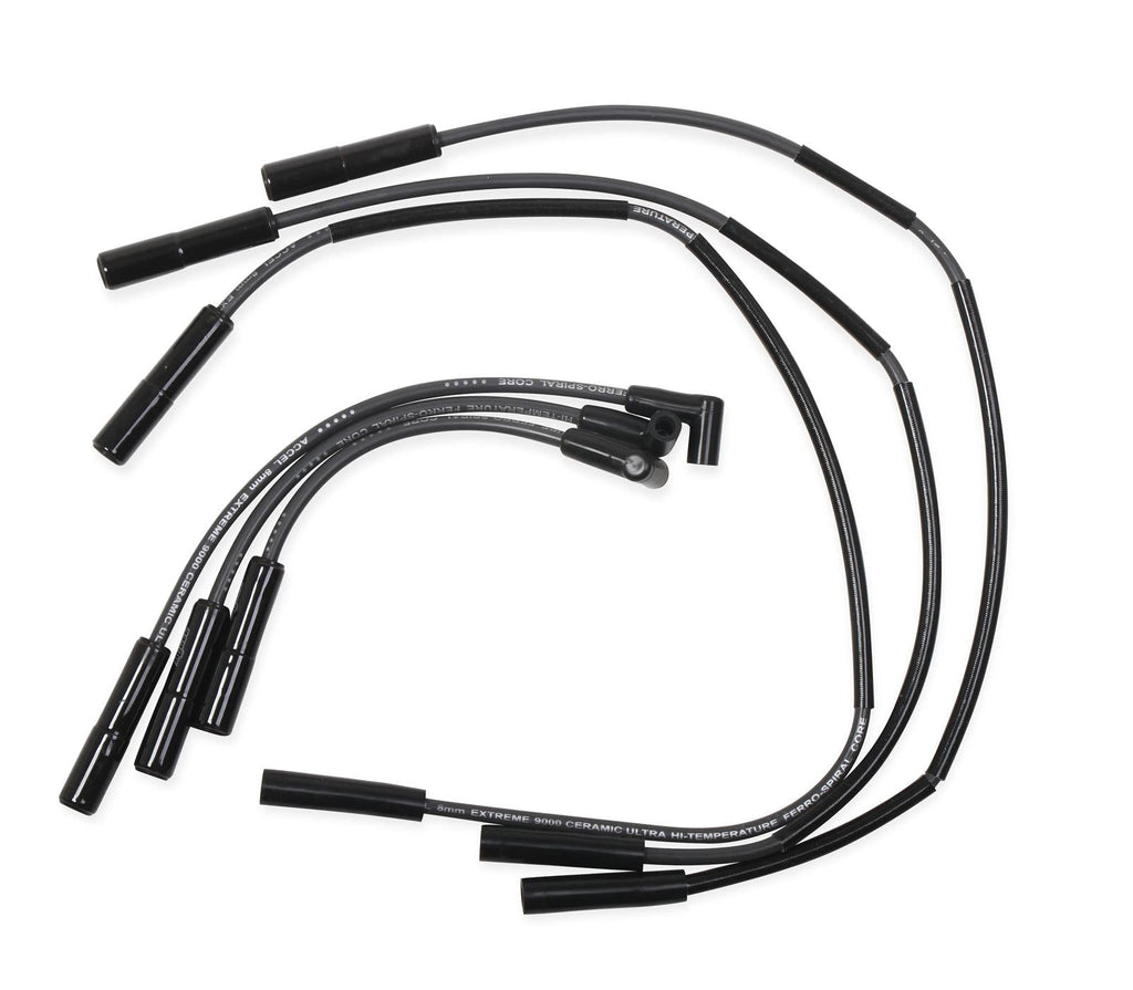 ACCEL Extreme 9000 ceramic wires are the cure for burnt spark plug boots. These wires provide excellent energy delivery while providing the highest level of RFI/EMI suppression. They're ideal for custom engines, boats, and RVs—plus great trackside accessories when you need to make up a replacement wire. ACCEL Extreme 9000 ceramic spark plug wire sets are available straight or in right-angle configurations. Order the set recommended for your vehicle and engine application.