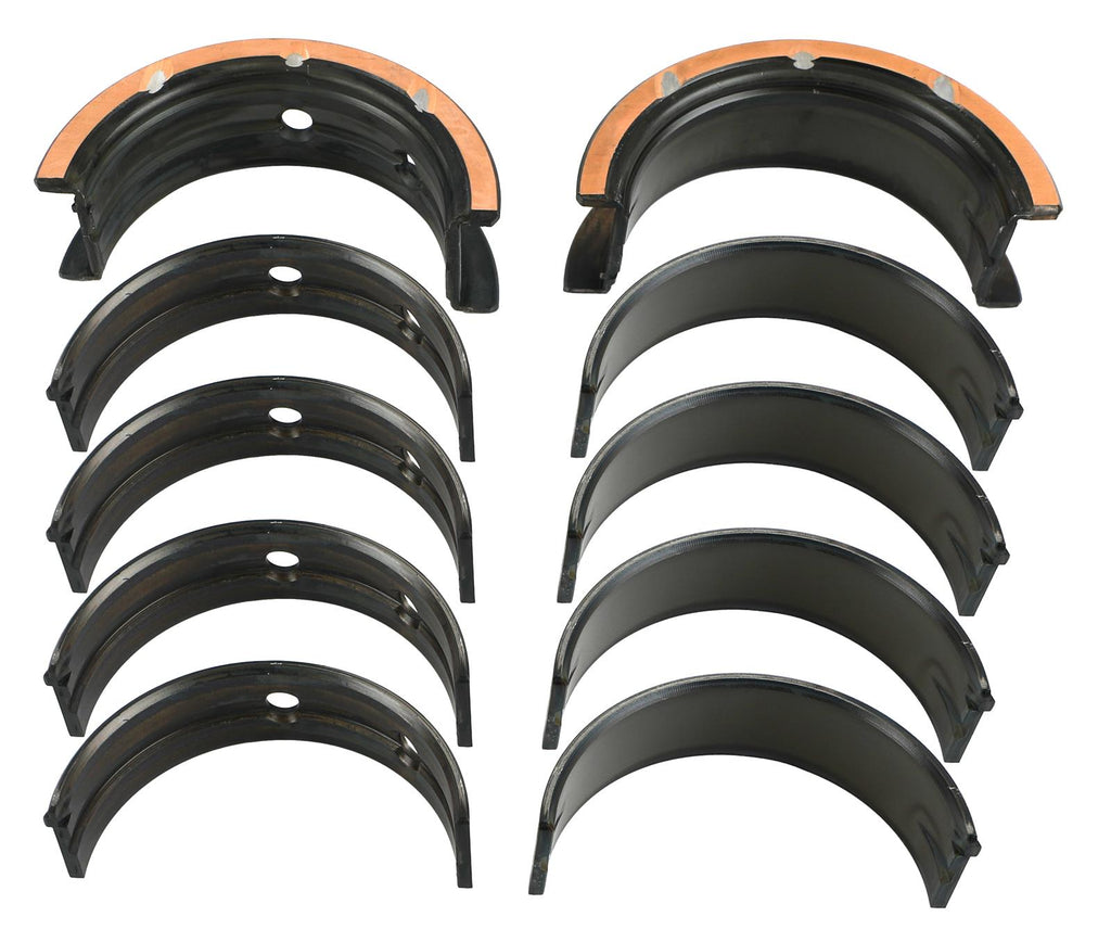 Main bearings feature multi-layered tri-metal copper alloy construction that blends characteristics to provide high strength and excellent seizure resistance. They are manufactured to exact tolerances ensuring a reliable fit and helping to maintain consistent clearances. Main bearings are augmented with extended grooves, as well as other bearing enhancements, like increased crush, bearing eccentricity, and enlarged I.D. chamfers.