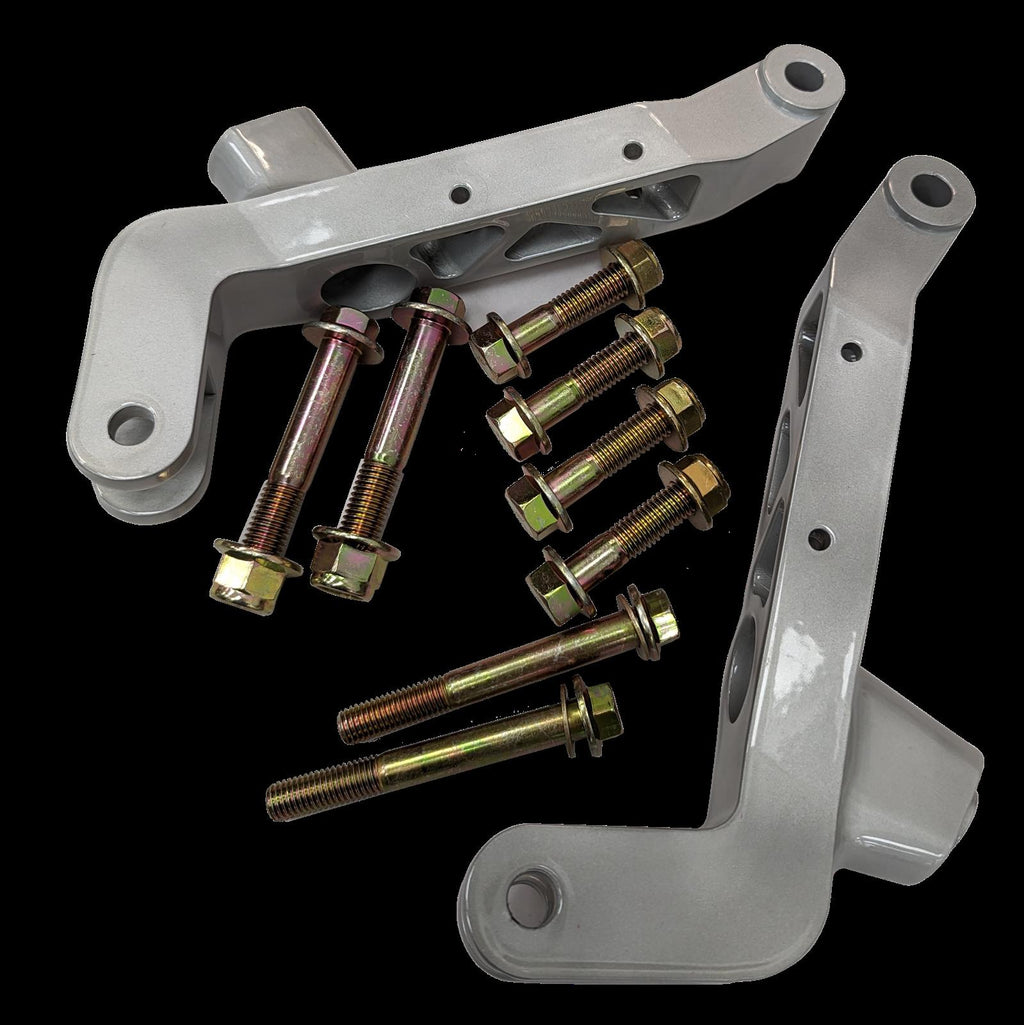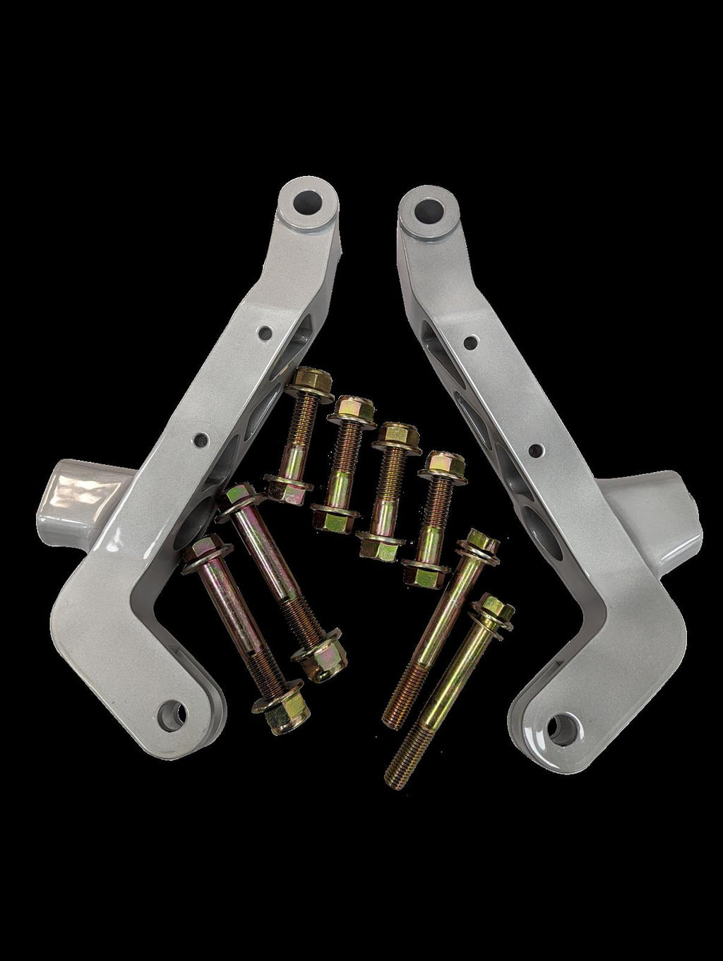 Tesla cradle converting your car or truck just got easier. These AEM Electronics coilover brackets will bolt to the rear knuckle on a Tesla Model S or Model X rear cradle, lowering the factory mounting point to allow for a longer coil-over. The brackets allow for the use of aftermarket coilovers when installing a Tesla Model S or X rear drive cradle into your EV conversion. Machined from billet T6-6061 and powdercoated to resist corrosion, the brackets will hold up to the harshest abuse and environments. All necessary hardware is included.