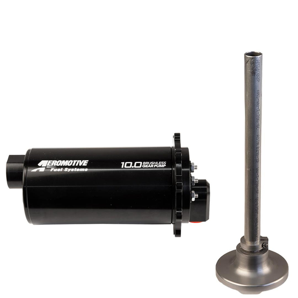 Aeromotive 10.0 gpm brushless variable speed gear pumps deliver ground-shaking performance with advanced technology. Aeromotive took what they learned from their mechanical spur gear pumps and engineered it to work in a compact flow-through design, creating a fuel pump that is able to move more fuel at pressures up to 150 psi without a drop in flow.