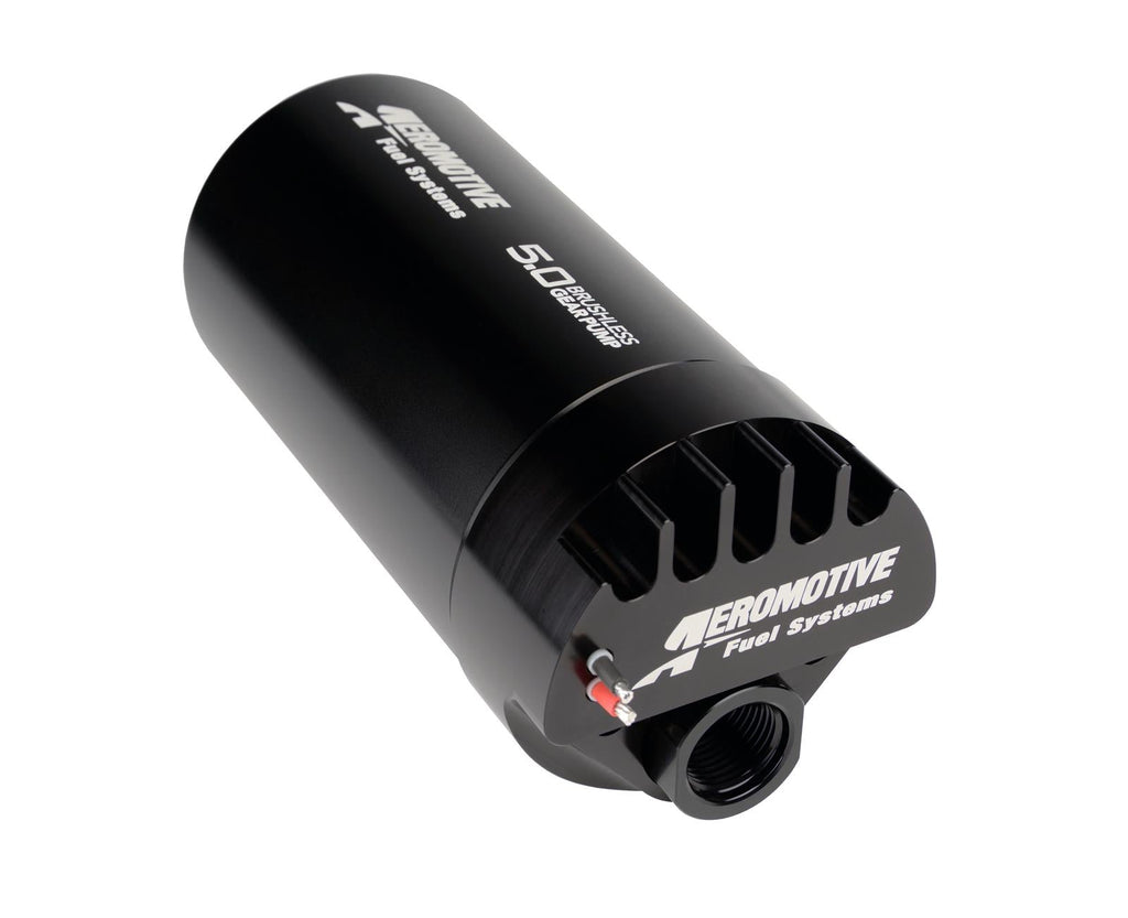 Aeromotive Pro-Series 5.0 gpm brushless gear pumps are engineered from the ground up for winning performance. In fact, they're the single highest-flowing electric fuel pumps on the market. These efficient pumps utilize a spur gear design, paired with a brushless motor, to deliver 5.0 gpm at 60 psi. Their inline flow-through design features contoured port machining and no shaft seals, while offering low-amp draw, excellent heat dissipation, and high-pressure capabilities. Lots of power needs lots of fuel; Aeromotive 5.0 gpm brushless gear pumps will feed your hungry high performance machine.Brand: Aeromotive