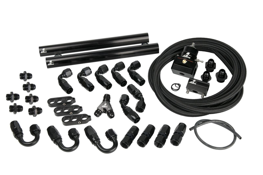 Aeromotive billet fuel rails are built for maximum fuel flow and ease of installation. They deliver optimal injector supply with minimal hydraulic fluctuation and will feed up to 3,000 hungry horses. The fuel rails feature ORB-08 ports with compact connections and positive leak-free sealing. Full-size ports at the end of the rails insure proper fuel flow. Additional inlet and outlet ports are provided where required for plumbing convenience. Steel mounting brackets are custom engineered for each application, combining a solid durable mounting platform that ensures a correct fit. Aeromotive fuel rails are CNC-machined and include a great looking anodized finish. Order the kit recommended for your vehicle.Brand: Aeromotive