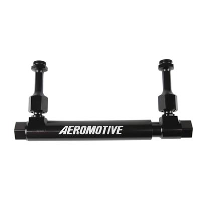 Aeromotive dual-action adjustable fuel logs incorporate new features previously unavailable. Each carburetor inlet uses a ball and socket assembly that swivels 20 degrees, allowing additional clearance for throttle stops, throttle linkage, and other accessories. They offer a healthy inlet that can feed high-horsepower engines and feature manufacturing from quality materials and a strong finish, providing durability and great looks. They also provide dual NPT ports (machined in) that allow you to install fuel pressure gauges or pressure transducers. Set a new standard for your ride with the Aeromotive dual-action adjustable fuel logs quality-engineered to fit!Brand: Aeromotive