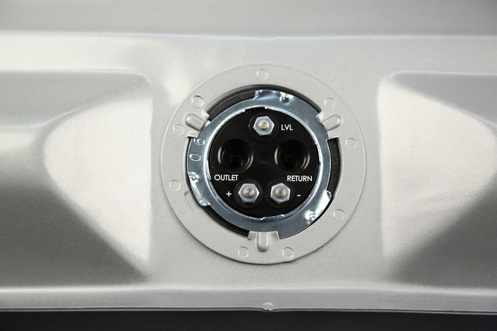 Aeromotive Gen II Stealth fuel tanks utilize patented and award-winning Phantom technology. This enables a quiet, high-flow EFI pump and baffle to maintain ample fuel supply around the inlet of the pump—which, in turn, ensures consistent fuel delivery and drivability even in low fuel conditions. The tanks feature outlet and return ports, along with electrical terminals positioned in the OEM location. This design enables flush installation to the vehicle floor and will not require strap modification or spacers. All Gen II Stealth tanks come out of the box completely assembled. The fuel pump, fuel level sending unit, and fuel/electrical bulkhead are pre-installed. As a true plug-and-play assembly, an Aeromotive Gen II Stealth tank will get you out of the garage and on the road in no time. Order the model recommended for fitment on your vehicle.Brand: Aeromotive