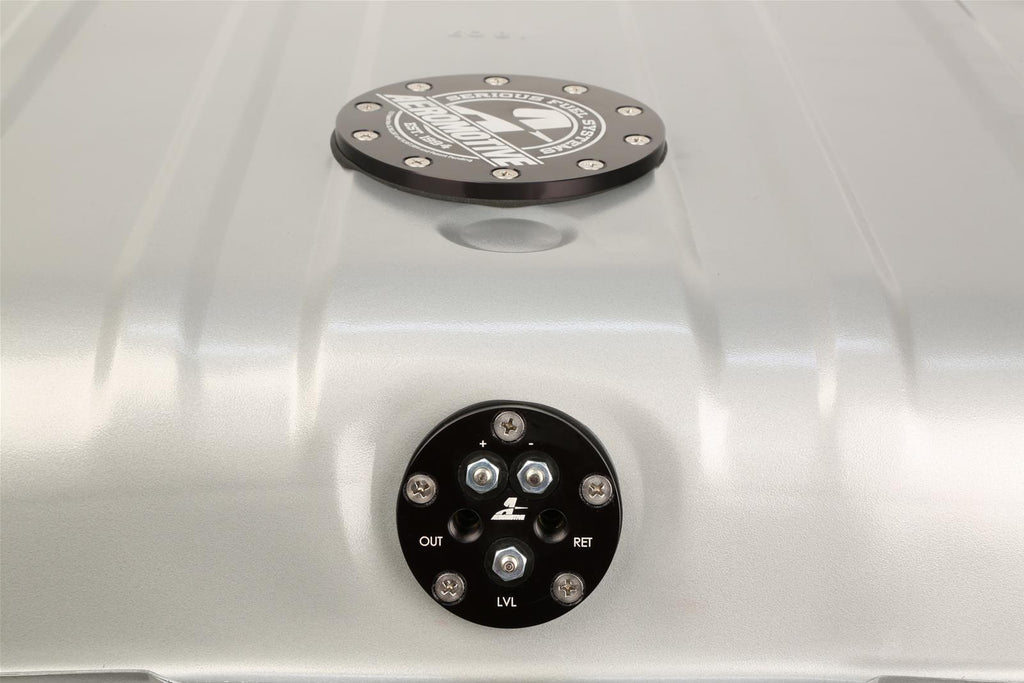 Aeromotive Gen II Stealth fuel tanks utilize patented and award-winning Phantom technology. This enables a quiet, high-flow EFI pump and baffle to maintain ample fuel supply around the inlet of the pump—which, in turn, ensures consistent fuel delivery and drivability even in low fuel conditions. The tanks feature outlet and return ports, along with electrical terminals positioned in the OEM location. This design enables flush installation to the vehicle floor and will not require strap modification or spacers. All Gen II Stealth tanks come out of the box completely assembled. The fuel pump, fuel level sending unit, and fuel/electrical bulkhead are pre-installed. As a true plug-and-play assembly, an Aeromotive Gen II Stealth tank will get you out of the garage and on the road in no time. Order the model recommended for fitment on your vehicle.Brand: Aeromotive