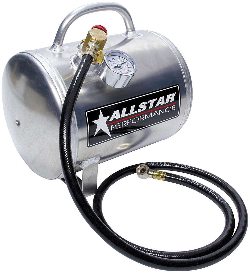 Allstar Performance air tanks are lightweight and portable providing an easy way to air up tires. Made from durable aluminum, these welded tanks will not rust or corrode, and they are pressure-tested to military specifications up to 300 psi. They're available in different sizes, styles, and capacities to best accommodate your needs. Whether for racing, rodding, or street performance, Allstar offers top-quality equipment, like their air tanks to keep you in motion.Brand: Allstar Performance