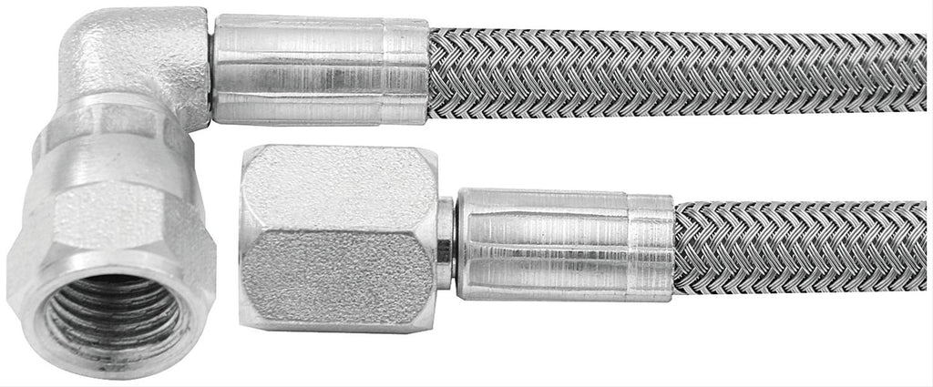 Toss those rubber hoses away in favor of Allstar Performance braided steel lines. Much more durable than conventional rubber hoses, they easily bend and flex without bursting. The PTFE-coated inner lining is compatible with all fluids; it's wrapped in a braided stainless steel cover to resist abrasion and corrosion. Allstar lines are available in nearly 150 models, with a variety of AN sizes, hose ends, and lengths to meet your needs. Select the braided steel lines designed to fit your application needs.Brand: Allstar Performance
