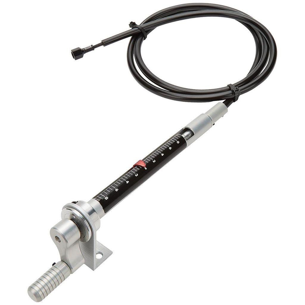 Allstar Performance brake bias adjusters with reference pointers put you in the know for exact brake adjustment settings—no more guessing the correct settings. When the adjusting knob or handle is turned, the pointer moves along the reference scale. The adjuster body can be pivoted for easy viewing and multiple applications. Simply record where the pointer is located and use as a baseline. Allstar brake bias adjuster housing, internals, brackets, and knob with detent are all made of aluminum. Each includes a 5 ft. cable that can be cut to any length for a custom fit and has 3/8 in.-24 threads for most standard pedal assemblies.Brand: Allstar Performance