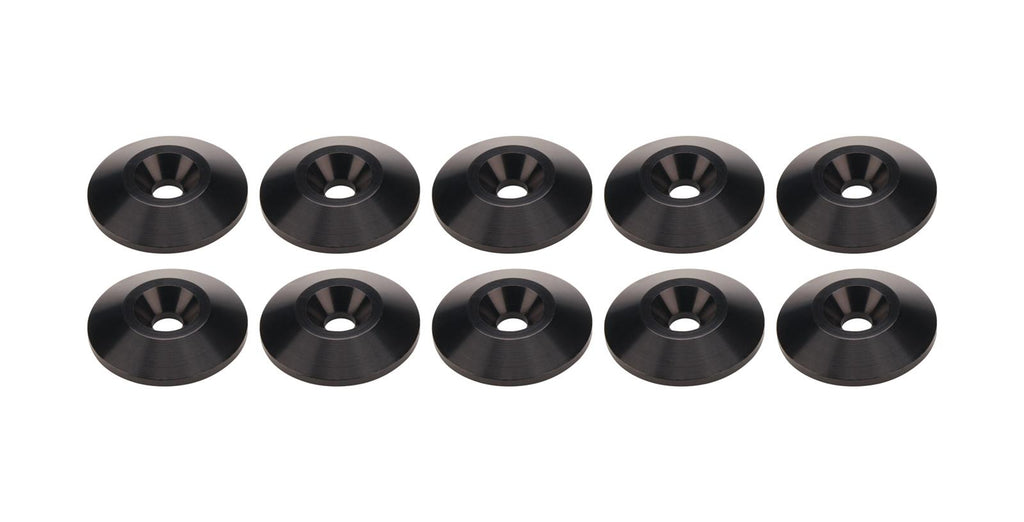 Allstar Performance countersunk washers are designed to allow the socket head fasteners to install flush with the surface, creating a smooth, finished appearance. They have many uses, including mounting roofs, spoilers, side skirts, and replacing sharp-edged fasteners inside of the cockpit. The washers are manufactured from aluminum and come in your choice of black or natural finishes.Brand: Allstar Performance