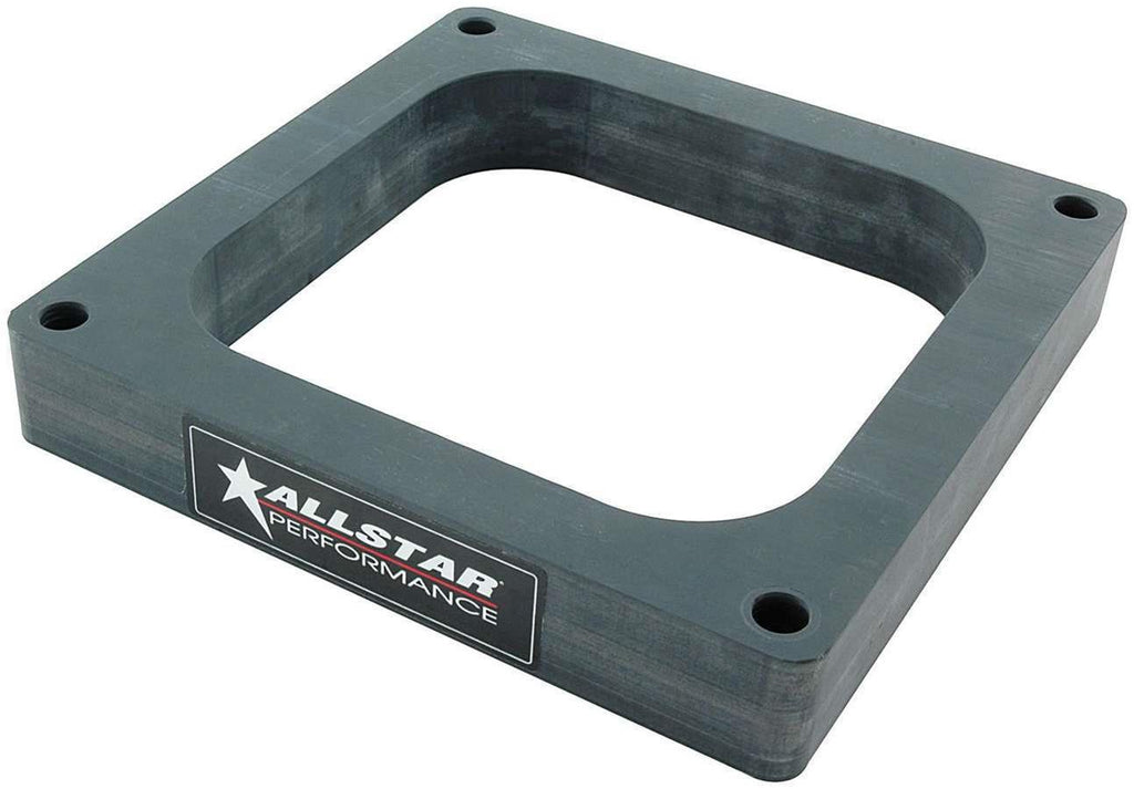 Allstar Performance Drag Hi-Flow carburetor spacers isolate your carburetor from the manifold, preventing horsepower-robbing heat transfer and increasing the distance from the bottom of the carburetor to the manifold plenum for better airflow. These spacers are CNC-machined in the USA from a polymer compound that can withstand temperatures of up to 400 degrees F. They're available in open or 4-hole versions for 4150 and 4500 Series Holley and Holley-style carburetors in 1/2 in., 1 in., and 2 in. thicknesses. The tapered, 4-hole spacers have specially contoured holes to increase air velocity under the carburetor. They are not intended or recommended for street or circle track use.Brand: Allstar Performance