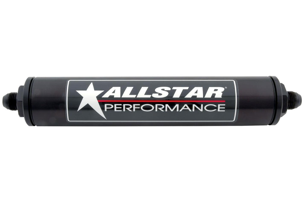 Allstar Performance inline aluminum fuel filters are designed to flow enough fuel for any race car. These anodized filters are offered with a stainless or paper element—or without any element. Allstar inline aluminum fuel filters are available in a choice of sizes, and for use with a variety of fuels, including gasoline, alcohol, diesel, E85, methanol, and nitromethane.Brand: Allstar Performance