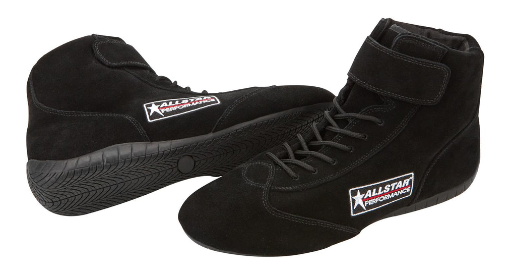Step into the fast lane with Allstar's mid-top driving shoes—where style meets safety, and performance takes the lead. Crafted with precision and engineered for the demands of the track, these SFI 3.3/5 certified driving shoes feature a suede outer layer with a Pyrovatex flame-retardant cotton material inner liner which offers a high level of heat and flame protection. Allstar understands the importance of durability in racing footwear. That is why these mid-top driving shoes are also equipped with reinforced lace, toe, and heel areas, ensuring longevity, as well as resilience in the face of rigorous racing conditions. For an unparalleled driving experience, choose these mid-top driving shoes from Allstar.