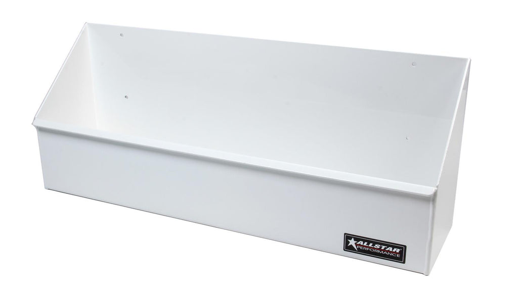 Allstar Performance offers a variety of trailer and garage organizers, including these oil bottle shelves. They mount to a wall and measure 4.5 in. deep, making them perfectly sized to hold most quart oil containers. Available in multiple lengths, the trays are fabricated from 1/8 in. aluminum with a white powdercoat finish.Brand: Allstar Performance
