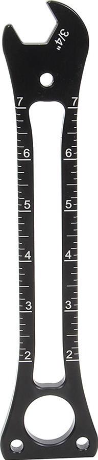 Allstar Performance wheelie bar wheel wrenches are crafted from 3/8 in. thick billet aluminum and are the perfect tools for rapidly and easily adjusting wheelie bar height. Highly visible scales printed directly onto the wrenches help to quickly measure wheelie bar height from 2 in. to 7 in. in 1/8 in. increments. Overall wrench length is 9 in. and they are available for a variety of jam nut sizes.Brand: Allstar Performance