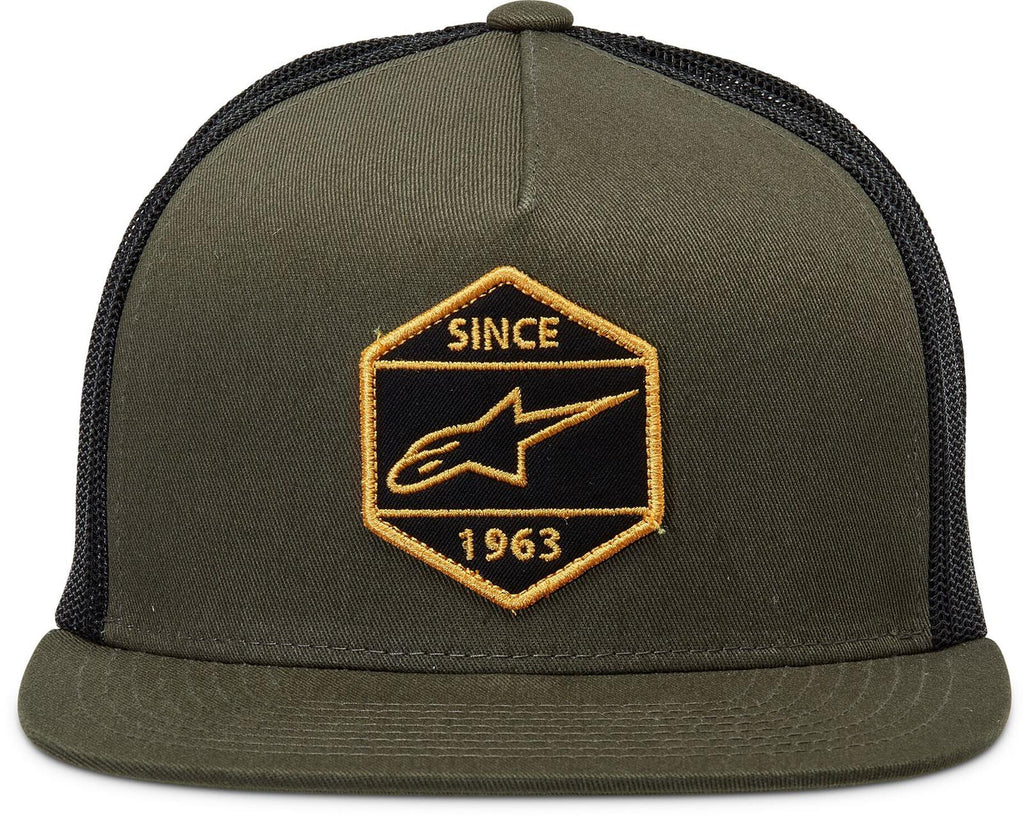 For 60 years, Alpinestars has been outfitting riders and enthusiasts with gear for on the track and off. Their MX Bolt trucker hats are for the moments when the helmet comes off, providing a comfortable, cool fit and plenty of style. They are designed from a cotton/poly blend with a flat bill, structured crown, a mesh back, and an adjustable snap back for the ideal fit. Available in several color combinations, each Alpinestars MX Bolt hat features an embroidered twill patch on the front stating "Since 1963" and logo. Choose your favorite.Brand: Alpinestars MX