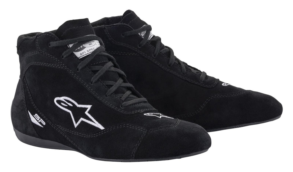 Alpinestars' SP V2 shoes are designed with their newly developed asymmetric lacing system for supportive closure and customized fit. The anatomically profiled shoes feature laser perforations for breathability—plus an exclusive ultra-thin Formula 1 specification sole with special line textured grip and improved pedal feel. Constructed from suede/leather, these high-top driving shoes are safety rated and available in multiple colors and men's sizes.Brand: Alpinestars Race