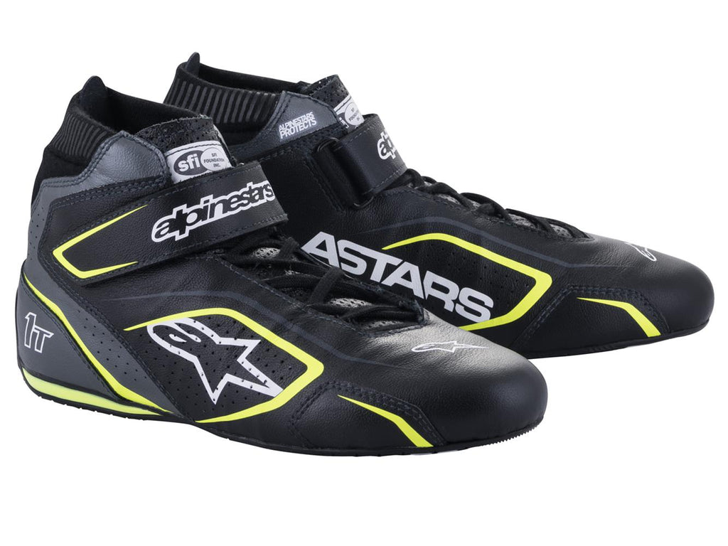 Alpinestars Tech-1T V3 shoes offer drivers optimum levels of comfort, fit and feel. Featuring a full bovine leather construction, the shoes boast a cutaway section at the heel to allow movement while operating the pedals with no pressure points when driving. Every aspect of the shoes has been carefully considered to keep weight as low as possible; the hook-and-loop strap is a single layer for added lightness—also ensuring there is no pressure point on the instep; and the classic lace closure system features hidden loops on the lateral and medial to guarantee a snug but unrestrictive fit.