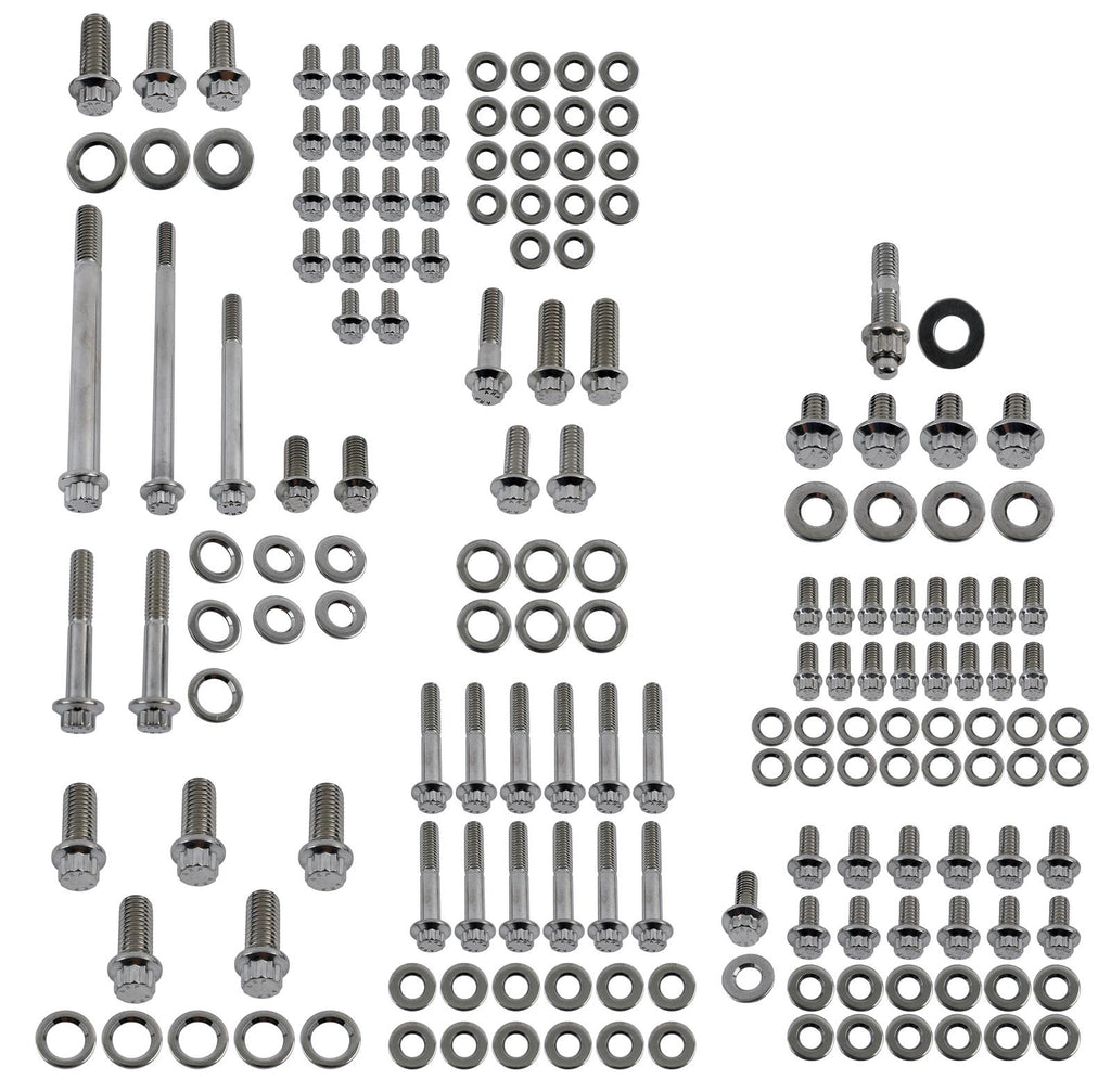 ARP engine bolt kits come in your choice of polished stainless steel or black oxide chromoly steel bolts with 12-point or hex heads. These kits include the bolts and washers for your engine.Brand: ARP