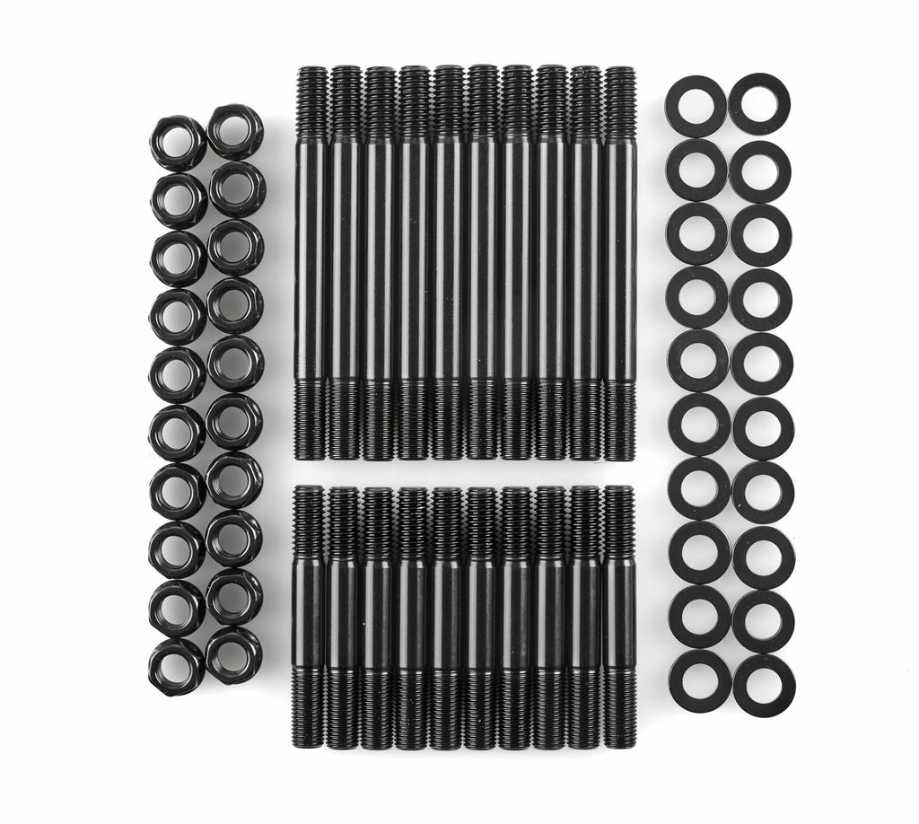 ARP Pro Series cylinder head studs are cold-forged to ensure molecular integrity. They're heat-treated prior to thread rolling and machining. ARP Pro Series kits are also available with 12-point nuts, and all studs come complete with hardened parallel washers for an even load distribution and accurate torque readings. With hundreds of models ready to ship, these cylinder head fasteners can be ordered for virtually any style engine.Brand: ARP