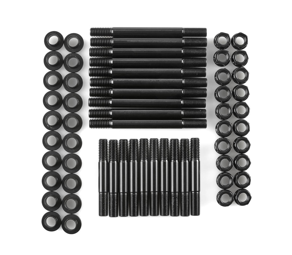 ARP Pro Series cylinder head studs are cold-forged to ensure molecular integrity. They're heat-treated prior to thread rolling and machining. ARP Pro Series kits are also available with 12-point nuts, and all studs come complete with hardened parallel washers for an even load distribution and accurate torque readings. With hundreds of models ready to ship, these cylinder head fasteners can be ordered for virtually any style engine.Brand: ARP