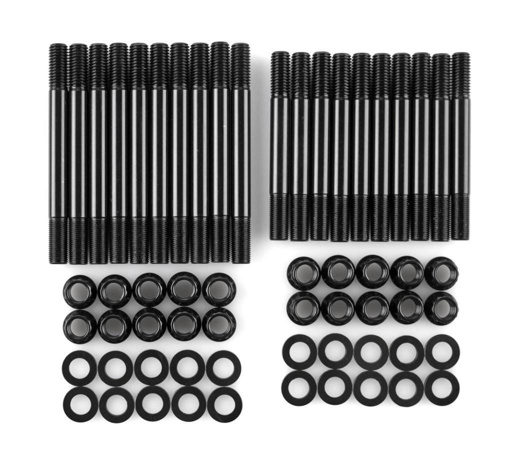ARP Pro Series cylinder head studs are cold-forged to ensure molecular integrity. They're heat-treated prior to thread rolling and machining. ARP Pro Series kits are also available with 12-point nuts, and all studs come complete with hardened parallel washers for an even load distribution and accurate torque readings. With hundreds of models ready to ship, these cylinder head fasteners can be ordered for virtually any style engine.Brand: ARP