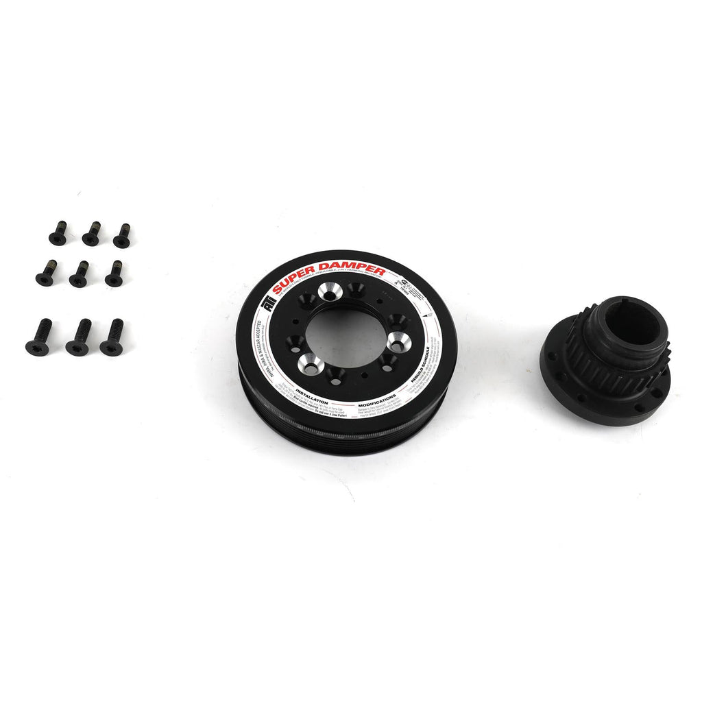 ATI Super Damper Serpentine Series harmonic balancers are patented and feature grooves for serpentine belts machined into the outer damper shell. The dampers come with six outer grooves for standard OEM drive systems—but eight and 10 grooves are available for supercharger or turbo applications. Serpentine dampers are offered in a variety of diameters, and crank hubs may be fitted with a 6-groove serpentine pulley to drive external oil pumps or vehicle accessories. The Serpentine Series Super Dampers fit all ATI GM-front crank hubs and can be adapted to many engine combinations, providing maximum flexibility. They're available in steel or lightweight, hardcoated aluminum.