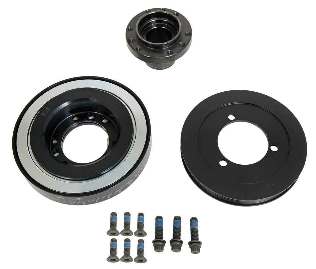 Patented ATI Super Damper standard harmonic balancers are the only crankshaft dampers designed exclusively for high performance engines. Inner and outer shells are available in aluminum or steel, and contain a steel inertia weight. The inertia weights have six (2-ring design) or eight (3-ring design) computer-machined grooves to retain the proper durometer O-rings (dyno tested for each application). Whether you race or just drive on the street, ATI harmonic balancers are the perfect choice.