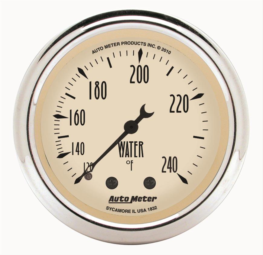 AutoMeter antique beige street rod analog gauges feature a timeless, nostalgic look—with the accuracy of a modern air core meter. Their beige-colored face is accented by a chrome bezel and a clear domed lens, capturing the essence of the 1920s and 30s. The hollowed-out end of their antique-style pointers have a diamond shape that matches the major division increments. Gauges are available to monitor a variety of functions, such as fuel level, oil pressure, and water temperature, as well as clock and voltmeter dials.Brand: AutoMeter