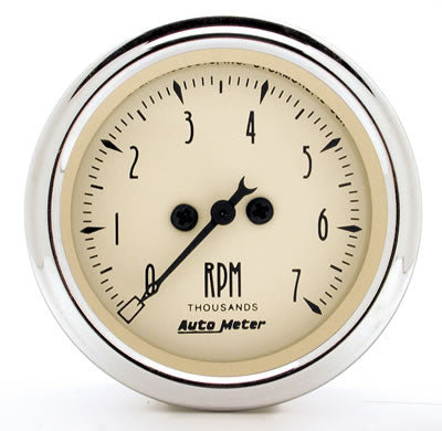 These AutoMeter Antique Beige street rod tachometers feature a timely, nostalgic look with the accuracy of a modern air core meter. Their beige colored face is accented by a chrome bezel and a clear domed lens, capturing the essence of the 1920s and 30s. The hollowed-out end of their antique-style pointer has a diamond shape that matches the major division increments.Brand: AutoMeter