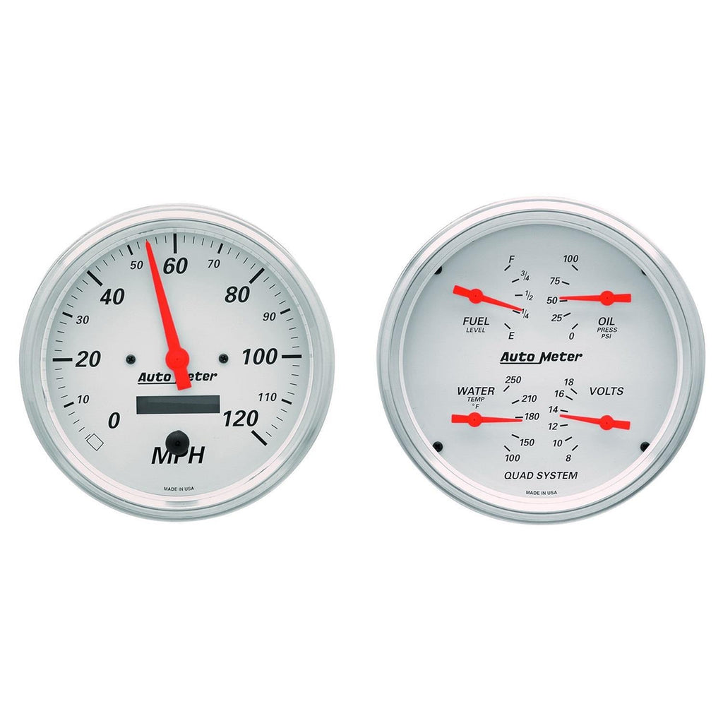 AutoMeter offers Arctic White gauge kits in a variety of configurations. These "cool" looking instruments feature a white dial face with performance-inspired graphics, a polished chrome bezel, and classic domed lens. American muscle style in every sense! Red and green bulb covers illuminate the dials for nighttime driving. From dual and quad data gauges, to multi-gauge clusters, you'll find the Arctic White kit that's right for your vehicle.Brand: AutoMeter