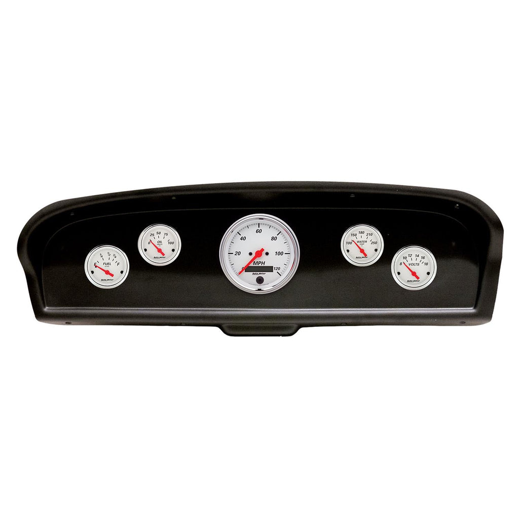 Do you need some cool gauges for your vehicle? Get a complete set with AutoMeter Arctic White instrument clusters. A white dial face with performance-inspired graphics, a polished chrome bezel, and a classic domed lens reveal a look that truly reflects the American muscle style. Red and green bulb covers really let this series shine when lit for nighttime driving. Adding to the gauges look is a billet aluminum panel available in a shiny polished or black finish.Brand: AutoMeter