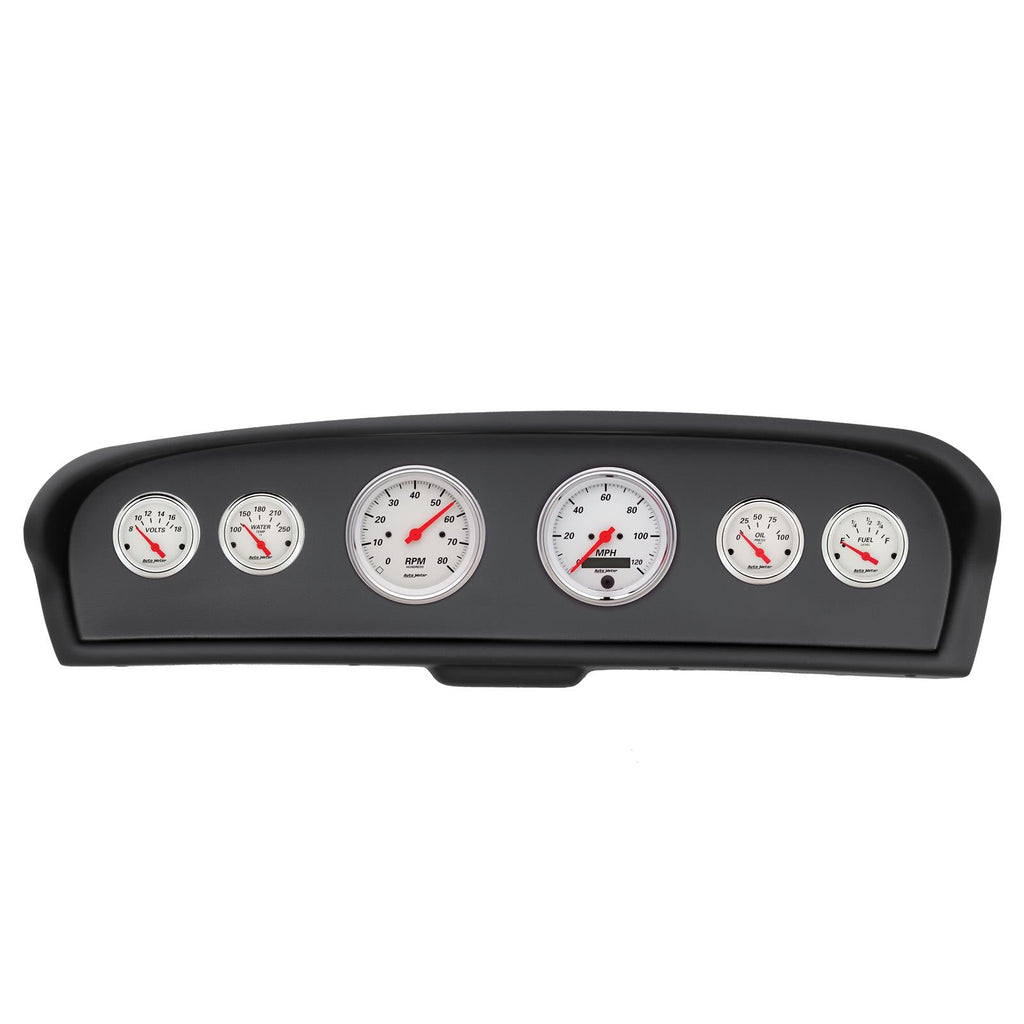 Do you need some cool gauges for your vehicle? Get a complete set with AutoMeter Arctic White instrument clusters. A white dial face with performance-inspired graphics, a polished chrome bezel, and a classic domed lens reveal a look that truly reflects the American muscle style. Red and green bulb covers really let this series shine when lit for nighttime driving. Adding to the gauges look is a billet aluminum panel available in a shiny polished or black finish.Brand: AutoMeter