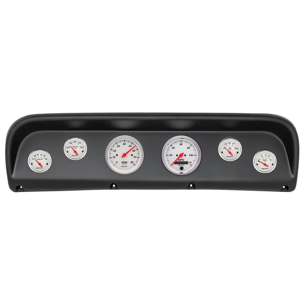 Do you need some cool gauges for your vehicle? Get a complete set with AutoMeter Arctic White instrument clusters. A white dial face with performance-inspired graphics, a polished chrome bezel, and a classic domed lens reveal a look that truly reflects the American muscle style. Red and green bulb covers really let this series shine when lit for nighttime driving. Adding to the gauges look is a billet aluminum panel available in a shiny polished or black finish.Brand: AutoMeter