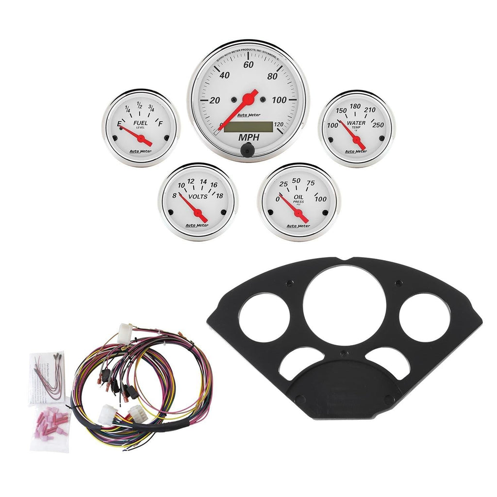 Do you need some cool gauges for your vehicle? Get a complete set with AutoMeter Arctic White instrument clusters. A white dial face with performance-inspired graphics, a polished chrome bezel, and a classic domed lens reveal a look that truly reflects the American muscle style. Red and green bulb covers really let this series shine when lit for nighttime driving. Adding to the gauges look is a billet aluminum panel available in a shiny polished or black finish.Brand: AutoMeter