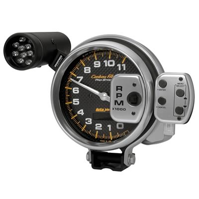 These state-of-the-art Carbon Fiber Pro Stock tachometers from AutoMeter are specifically designed for drag racers who manually shift their transmissions. Shifting gears at a desired engine rpm from shift point to shift point can increase consistency and performance. These tachometers allow the racer to select up to four separate shift points and pre-set each one, using a digital readout located on the dial face. They also offer "Short-Shift" protection that responds when a gear has been changed, even if the driver changes gears before the shift light has been triggered.Brand: AutoMeter