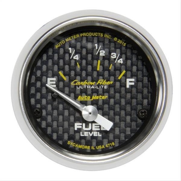 AutoMeter Carbon Fiber Ultra-Lite analog gauges combine accuracy and reliability with the cutting-edge look of carbon fiber. They feature a real carbon fiber face with a silver bezel to give your cockpit a true new-age look. The instruments are ruggedly built to withstand harsh racing environments, providing unsurpassed accuracy and reliability. These gauges are available in a dozen individual types, with options for each. Order the models needed for your dash panel.Brand: AutoMeter