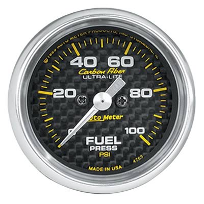 AutoMeter Carbon Fiber Ultra-Lite analog gauges combine accuracy and reliability with the cutting-edge look of carbon fiber. They feature a real carbon fiber face with a silver bezel to give your cockpit a true new-age look. The instruments are ruggedly built to withstand harsh racing environments, providing unsurpassed accuracy and reliability. These gauges are available in a dozen individual types, with options for each. Order the models needed for your dash panel.Brand: AutoMeter