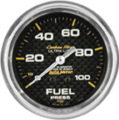 AutoMeter Carbon Fiber Ultra-Lite analog gauges combine accuracy and reliability with the cutting-edge look of carbon fiber. They feature a real carbon fiber face with a silver bezel to give your cockpit a true new-age look. The instruments are ruggedly built to withstand harsh racing environments, providing unsurpassed accuracy and reliability. These gauges are available in a dozen individual types, with options for each. Order the models needed for your dash panel.Brand: AutoMeter
