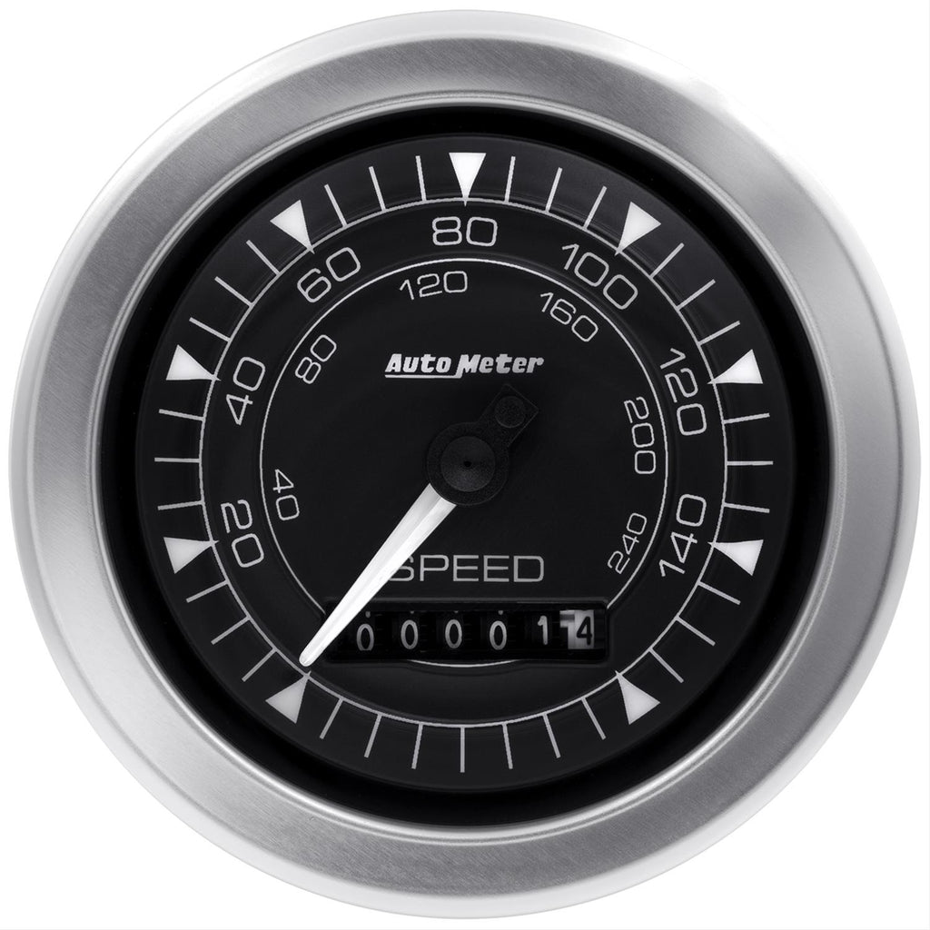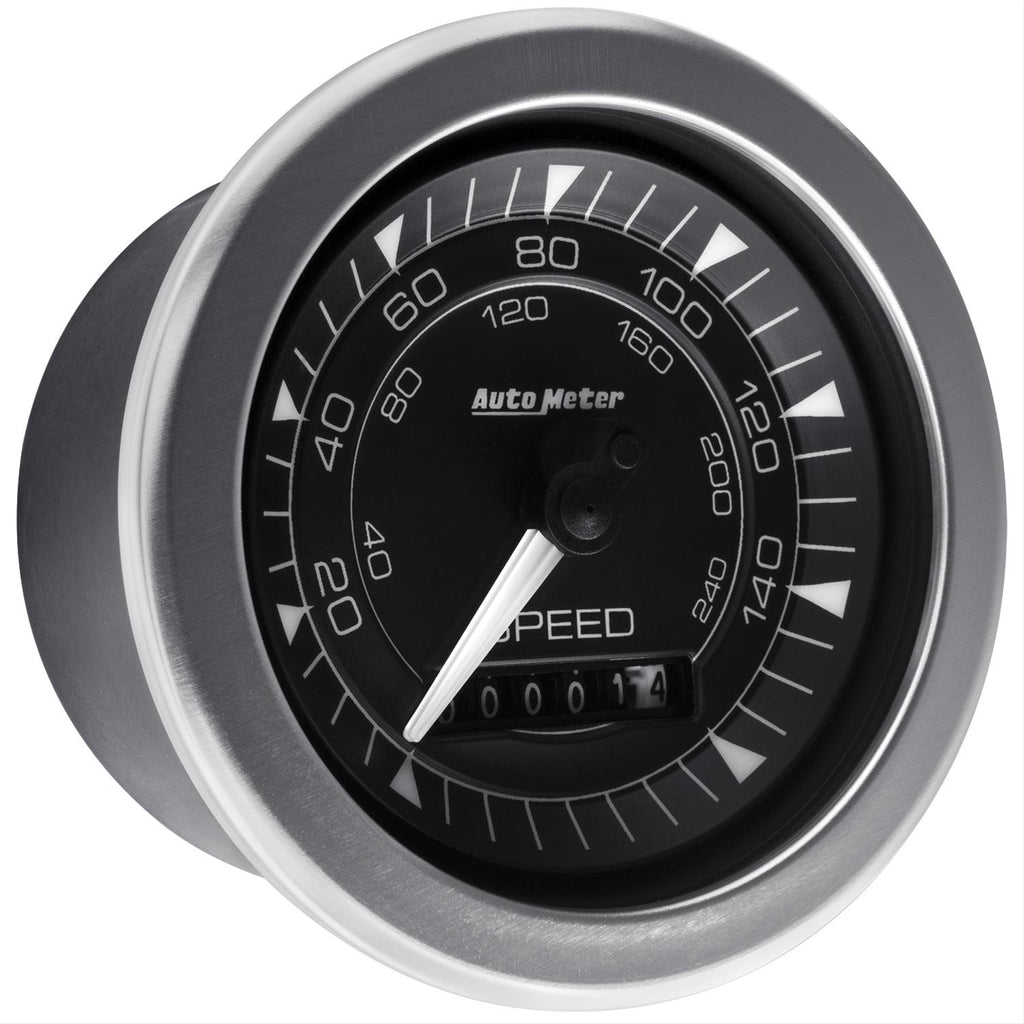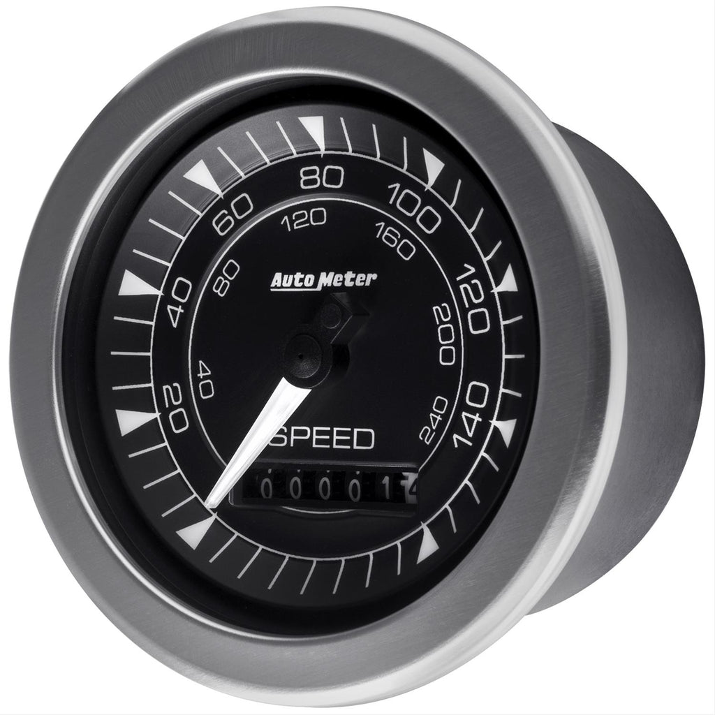Keep tabs on your MPH with an AutoMeter Chrono Series speedometer. These gauges feature a silver bezel, white digits, black face, modern LED through-the-dial lighting, and are 12 and 16 V compatible. Change the look of your ol' hot rod, classic car, or muscle car with AutoMeter Chrono Series instrumentation.Brand: AutoMeter