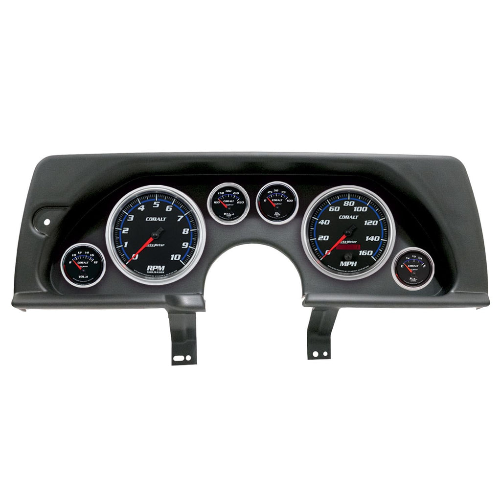AutoMeter Cobalt instrument clusters outfit your classic muscle car or truck with direct-fit kits that offer a custom performance solution without the custom price! The Cobalt kits include a set of six iconic AutoMeter gauges that feature modern blue LED through-the-dial lighting to provide clear visibility during nighttime use, plus a rugged, durable, and paintable thermoformed ABS plastic dash panel. The instrument clusters are easy to install and require no cutting or modifications to your original dash. They also are designed with cutouts, where applicable, for factory accessory controls, air vents, and radio. Track your engine's vitals in real-time with highly responsive and accurate electric air-core gauges inside AutoMeter Cobalt instrument clusters.