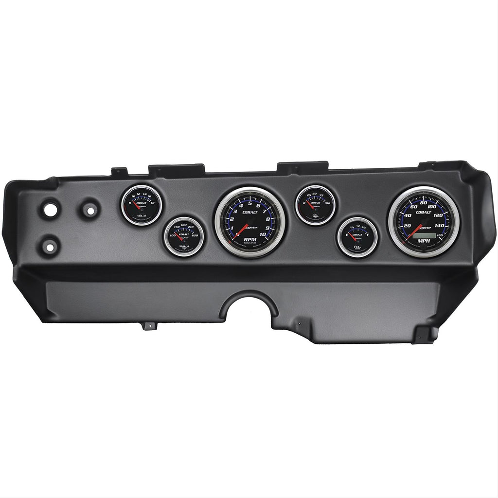 AutoMeter Cobalt instrument clusters outfit your classic muscle car or truck with direct-fit kits that offer a custom performance solution without the custom price! The Cobalt kits include a set of six iconic AutoMeter gauges that feature modern blue LED through-the-dial lighting to provide clear visibility during nighttime use, plus a rugged, durable, and paintable thermoformed ABS plastic dash panel. The instrument clusters are easy to install and require no cutting or modifications to your original dash. They also are designed with cutouts, where applicable, for factory accessory controls, air vents, and radio. Track your engine's vitals in real-time with highly responsive and accurate electric air-core gauges inside AutoMeter Cobalt instrument clusters.