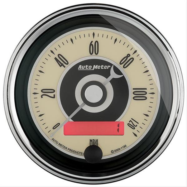 AutoMeter Cruiser AD speedometers feature a hybrid metal dial with an illuminated pointer for quick-glance control and through-the-dial LED illumination. Pick up one of these unique Cruiser AD speedometers for your custom ride to stand out in a crowd. When it comes to gauges, nobody beats the quality, looks, and dependability of AutoMeter.Brand: AutoMeter