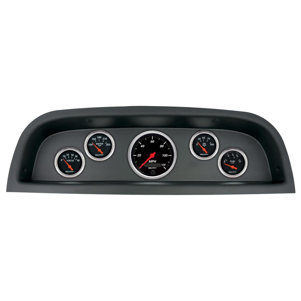 AutoMeter Designer Black instrument clusters outfit your classic muscle car or truck with the ability to track your engine's vitals in real-time with highly responsive and accurate electric air-core gauges. These direct-fit kits include a set of six iconic AutoMeter gauges that feature traditional incandescent lighting to illuminate around the perimeter of the dial, plus a rugged, durable, and paintable thermoformed ABS plastic dash panel. The instrument clusters are easy to install and require no cutting or modifications to your original dash. They also are designed with cutouts, where applicable, for factory accessory controls, air vents, and radio. Custom performance instrument solutions for your vehicle without the custom price—AutoMeter instrument clusters.