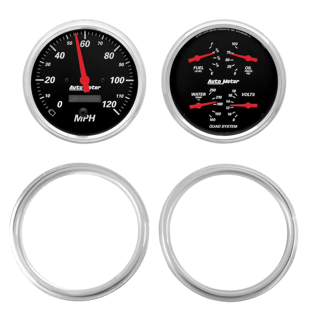 AutoMeter Designer Black instrument clusters outfit your classic muscle car or truck with the ability to track your engine's vitals in real-time with highly responsive and accurate electric air-core gauges. These direct-fit kits include a set of six iconic AutoMeter gauges that feature traditional incandescent lighting to illuminate around the perimeter of the dial, plus a rugged, durable, and paintable thermoformed ABS plastic dash panel. The instrument clusters are easy to install and require no cutting or modifications to your original dash. They also are designed with cutouts, where applicable, for factory accessory controls, air vents, and radio. Custom performance instrument solutions for your vehicle without the custom price—AutoMeter instrument clusters.