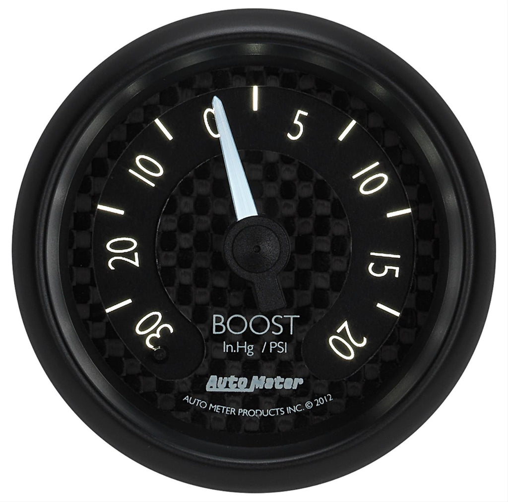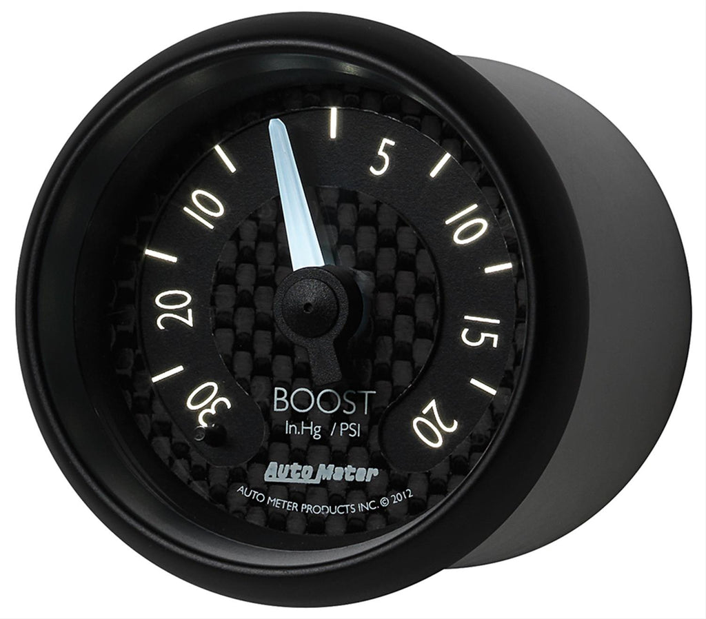 AutoMeter GT Series analog gauges are powered by race-hardened, high-precision internals developed from 56 years of competition experience. These instruments are equipped with cutting-edge, LED illumination to maximize visibility in all conditions. Their matte black bezels minimize cockpit glare, while aircraft-inspired dials (constructed from real carbon fiber) clearly communicate mission-critical data.