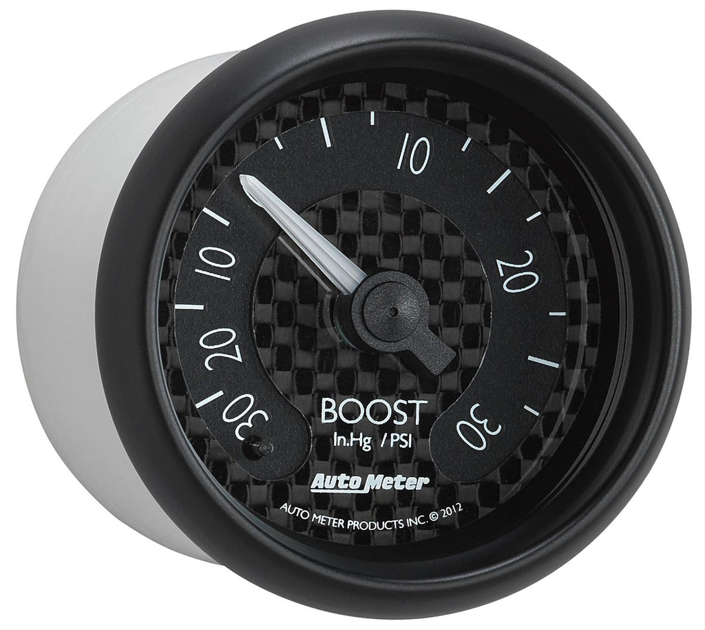 AutoMeter GT Series analog gauges are powered by race-hardened, high-precision internals developed from 56 years of competition experience. These instruments are equipped with cutting-edge, LED illumination to maximize visibility in all conditions. Their matte black bezels minimize cockpit glare, while aircraft-inspired dials (constructed from real carbon fiber) clearly communicate mission-critical data.