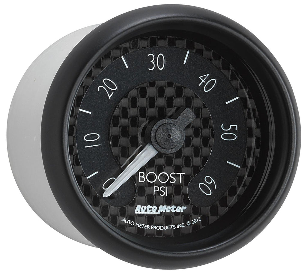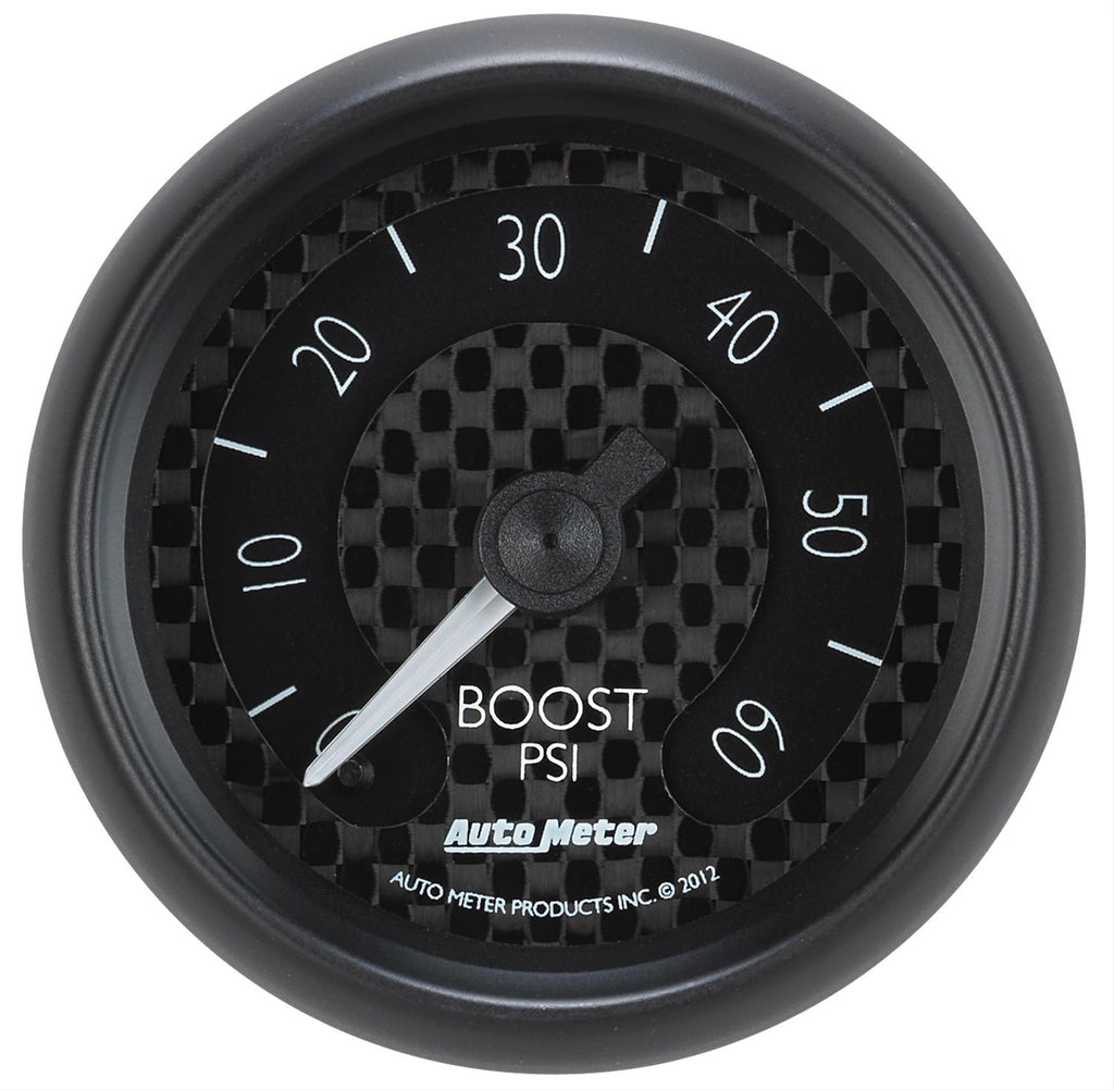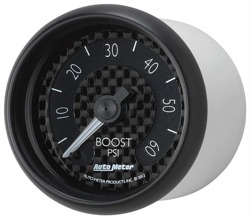 AutoMeter GT Series analog gauges are powered by race-hardened, high-precision internals developed from 56 years of competition experience. These instruments are equipped with cutting-edge, LED illumination to maximize visibility in all conditions. Their matte black bezels minimize cockpit glare, while aircraft-inspired dials (constructed from real carbon fiber) clearly communicate mission-critical data.