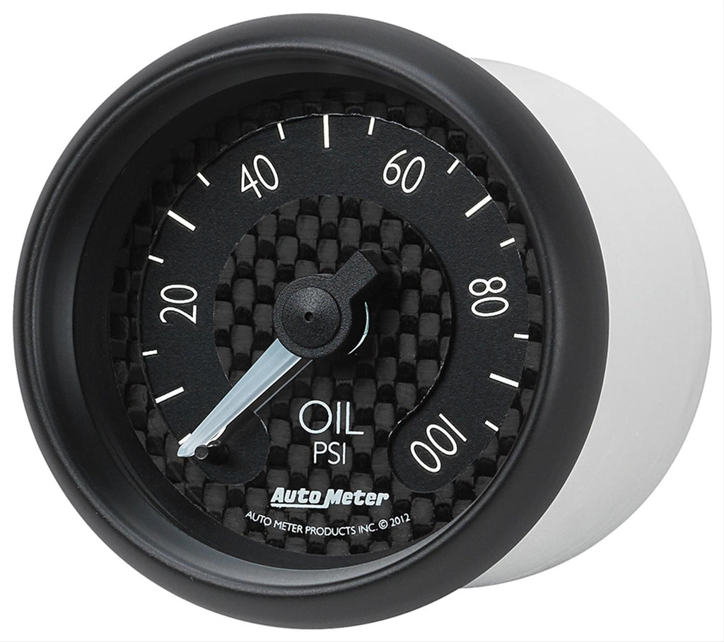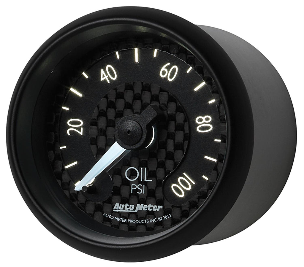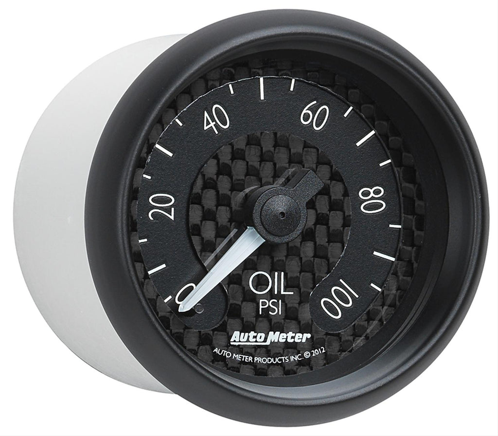AutoMeter GT Series analog gauges are powered by race-hardened, high-precision internals developed from 56 years of competition experience. These instruments are equipped with cutting-edge, LED illumination to maximize visibility in all conditions. Their matte black bezels minimize cockpit glare, while aircraft-inspired dials (constructed from real carbon fiber) clearly communicate mission-critical data.