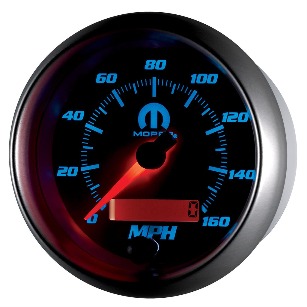 AutoMeter Mopar electrical programmable speedometers are a perfect addition to your ride! These speedometers feature AutoMeter's renowned high performance movement and highly visible, blue night time illumination. AutoMeter Mopar speedometers are offered in a choice of black or white gauge face colors with distinctly marked increments, high-contrast glowing red pointers, and the famous Mopar "M" logo in the center.Brand: AutoMeter